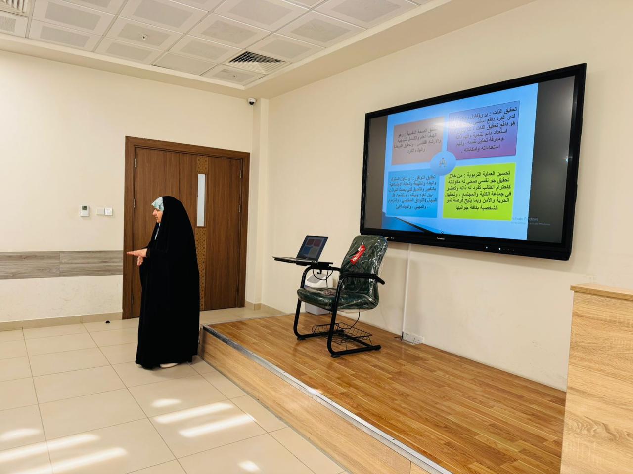 • Director of the International Accreditation Department / Scientific Supervision and Evaluation Authority / Ministry of Higher Education and Scientific Research , among the corridors of Al-Zahraa University, for Women .