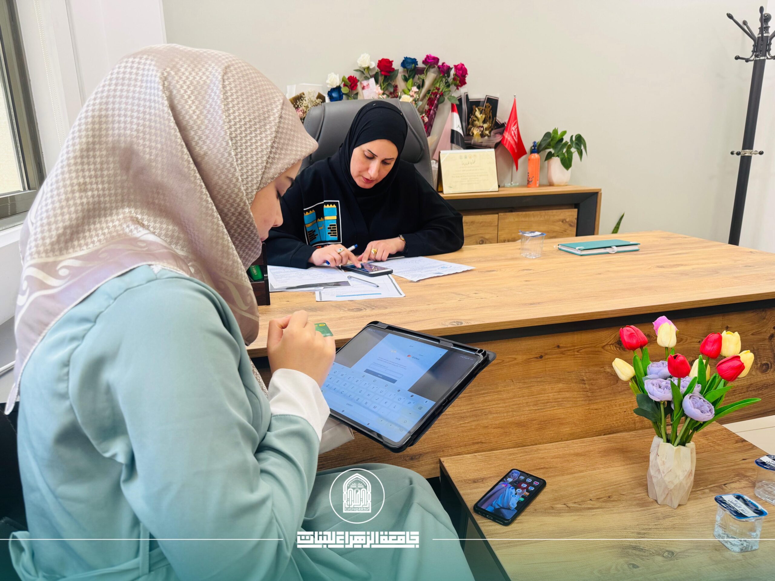 • Director of the International Accreditation Department / Scientific Supervision and Evaluation Authority / Ministry of Higher Education and Scientific Research , among the corridors of Al-Zahraa University, for Women .