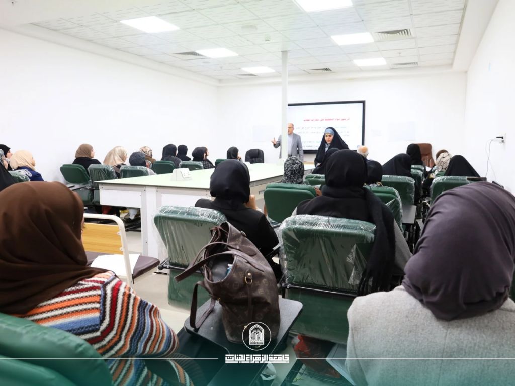 Under the patronage of the President of Al-Zahraa University (PBUH) for Women, Prof. Dr. Zainab Al-Sultani, and under the supervision of the Dean of the College of Education, Prof. Dr. Iman Sameer Bahiyya, the College of Education / Department of Art Education, in cooperation with the Continuing Education Center, organized a scientific workshop entitled “The Impact of Diverse Drawing Materials on Developing Artistic Skills among Art Education Students.”