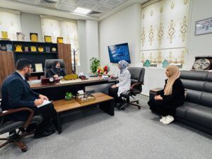 The Dean of the College of Pharmacy, Prof. Dr. Nour Hatif Al-Dabbagh, held a coordination meeting with the Student Activities Division of the college, in the presence of a representative of the fifth-year students, to discuss the preparations for the central graduation ceremony for the academic year 2025–2026.