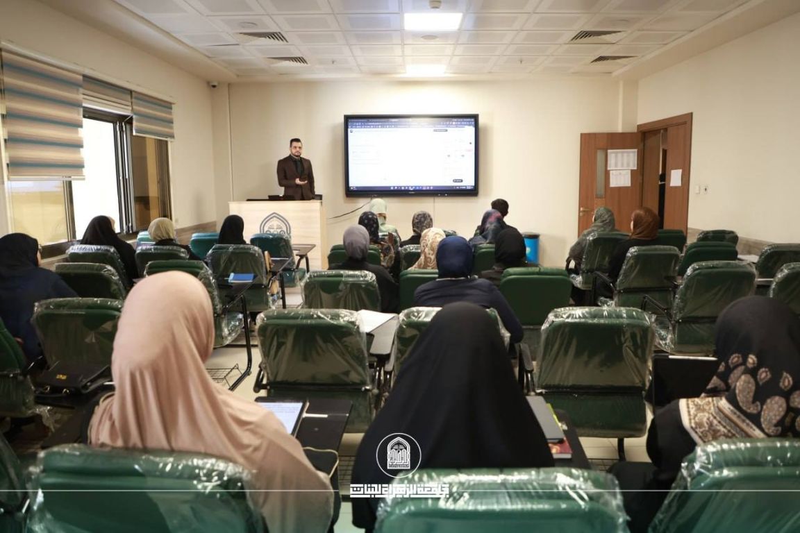 Under the patronage of the President of Al-Zahraa University for Women, Prof. Dr. Zainab Al-Sultani, and under the supervision of the Dean of the College of Health and Medical Technologies, Assist. Prof. Dr. Ali Al-Khafaji, the Department of Radiology and Sonar Technologies organized a scientific workshop entitled “Uses of Artificial Intelligence (NotebookLM)”, presented by Dr. Murtadha Diaa Mohsen, with the attendance of a number of female students and faculty members.